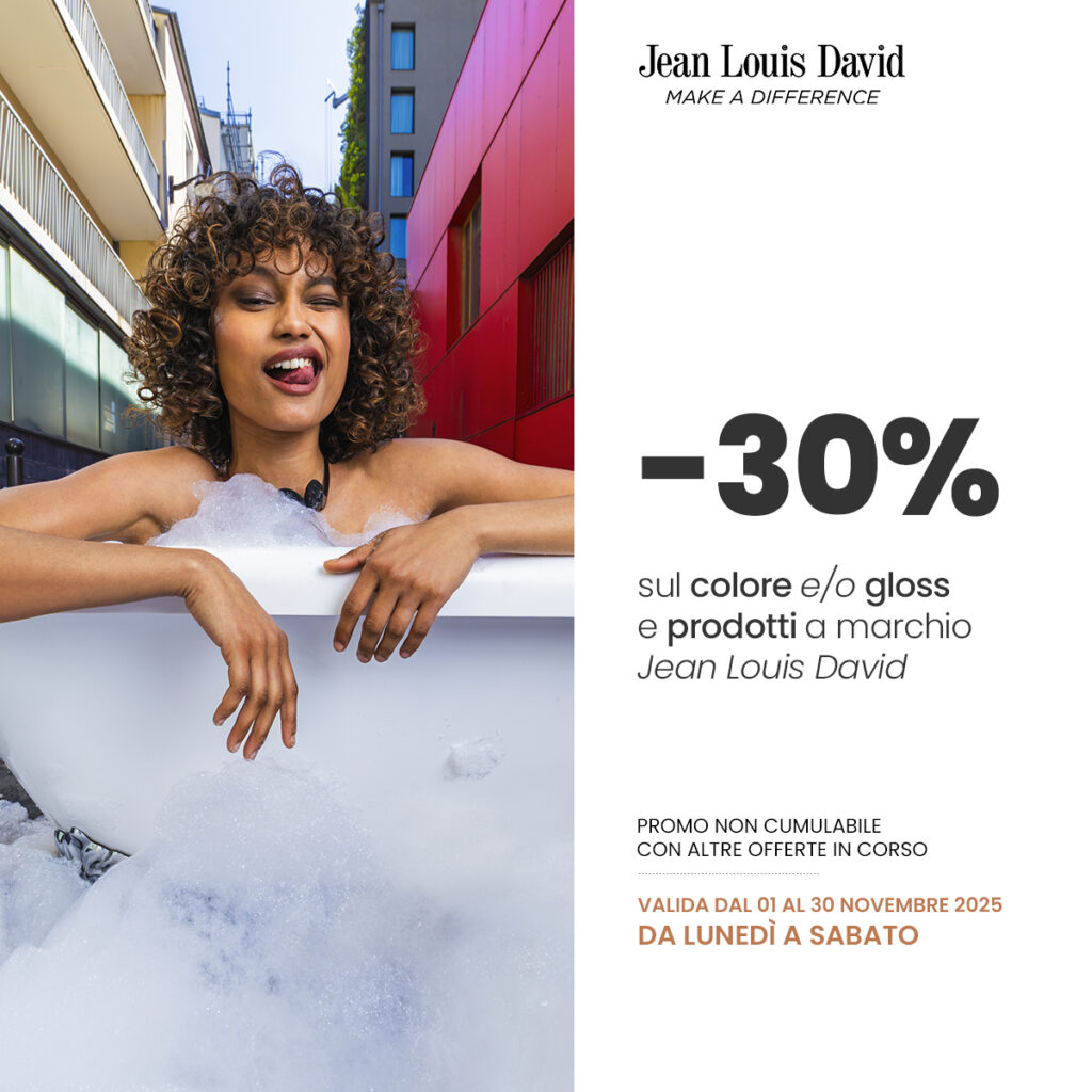 Approfitta del –30% su colore e/o gloss e sui prodotti a marchio Jean Louis David.